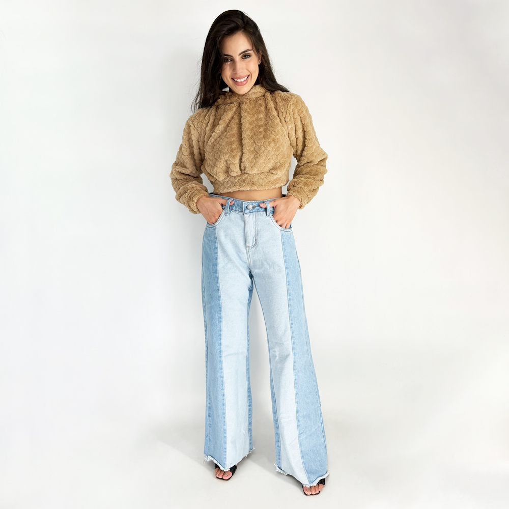 Casaco cropped com pelo fake e capuz, para te deixar quentinha e glamurosa!