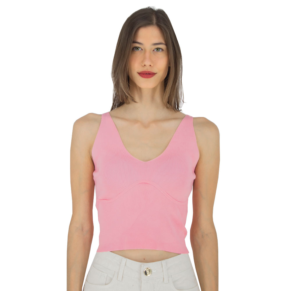 Blusa Tricot Canelada, decote V e modelagem corset.